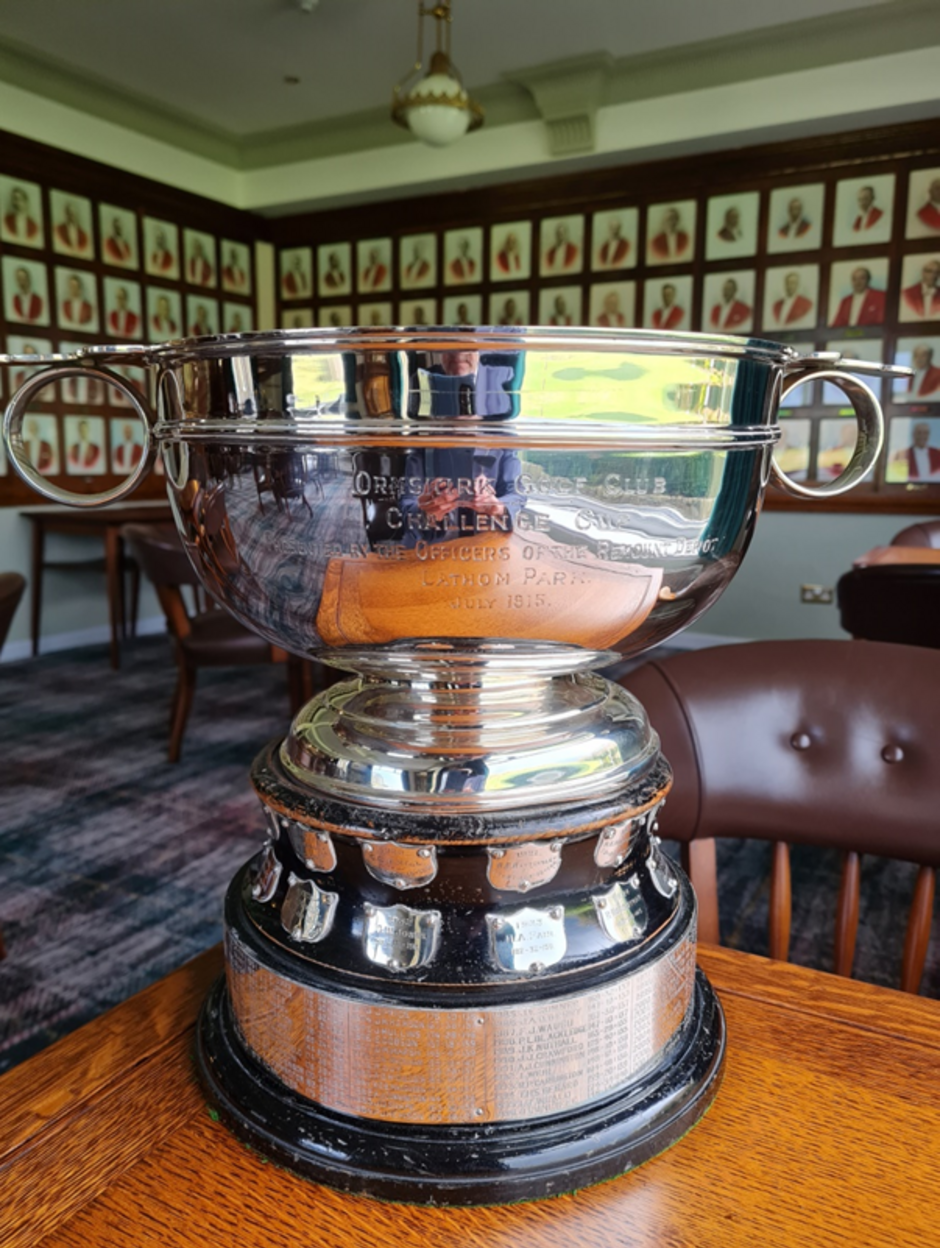 The bright Silver Cup presented to the Golf Club by the Officers of the RAOC depot circa 1949.